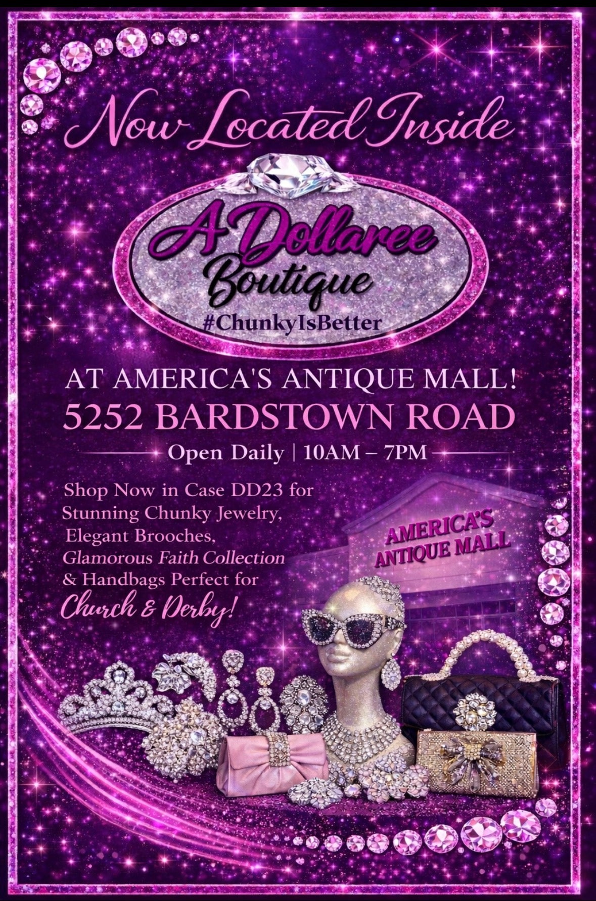 At Adollaree Boutique, we don’t do basic — we do bold. From chunky glam earrings and standout brooches to rhinestone ties, junk hats, and glamorous handbags, our accessories are designed to elevate your entire look.