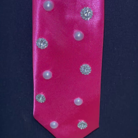 Make a bold and feminine statement with the Pink Radiance Crystal Necktie, a luxurious blend of elegance and edge. Crafted from rich, satin fabric in a vibrant pink hue, this piece commands attention with its lustrous shine and hand-embellished crystal detailing.