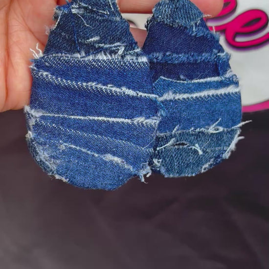 Make a bold yet effortless statement with the Frayed Edge Denim Drops, a handcrafted pair of earrings from Adollaree Boutique’s Tied in Denim Collection. Each pair is made from repurposed denim, giving new life to classic blue jeans with raw texture and authentic charm.