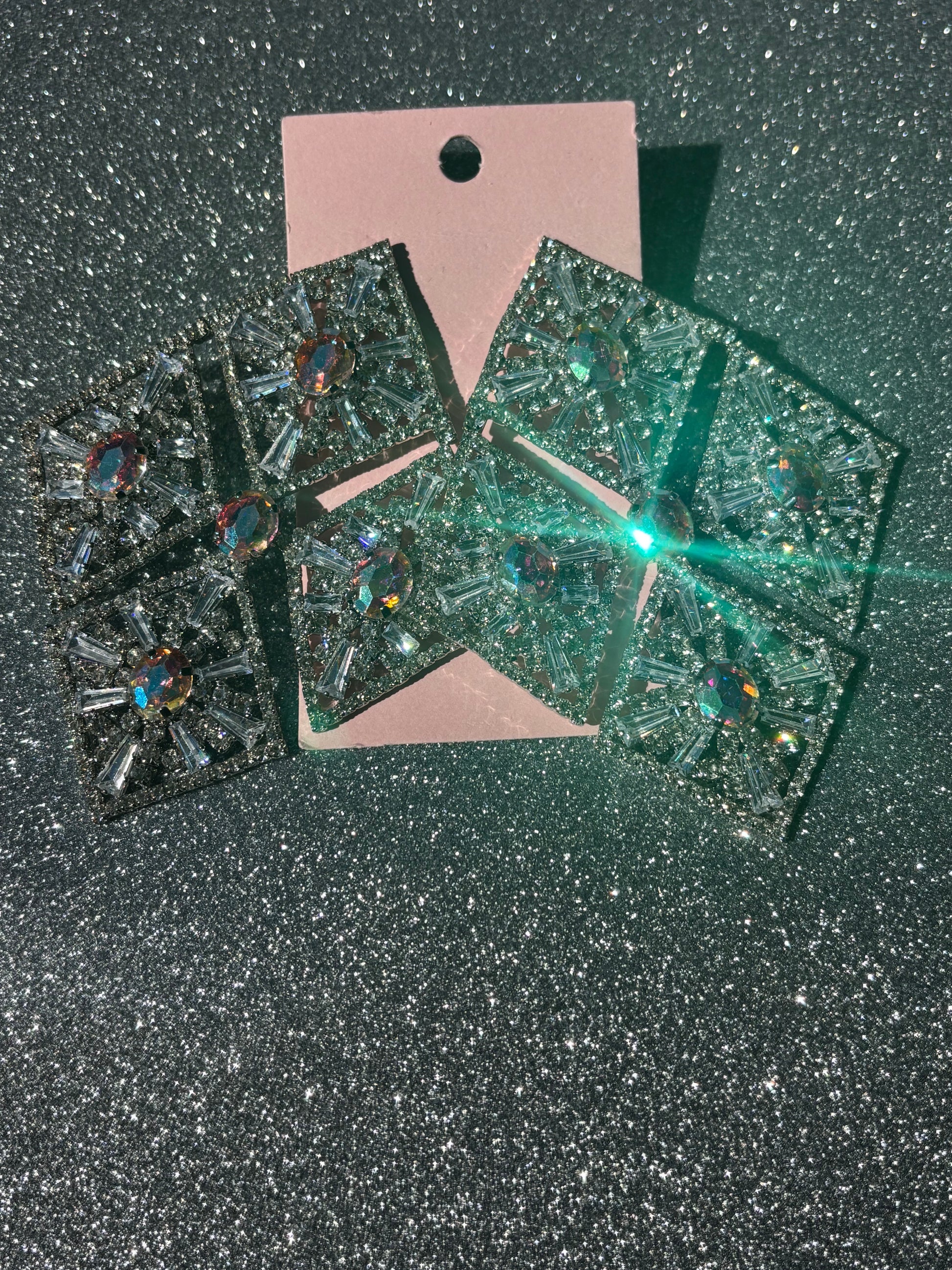 ✨ Oversized Glass Stone Embellished Diamond Frame Chandelier Evening Earrings ✨