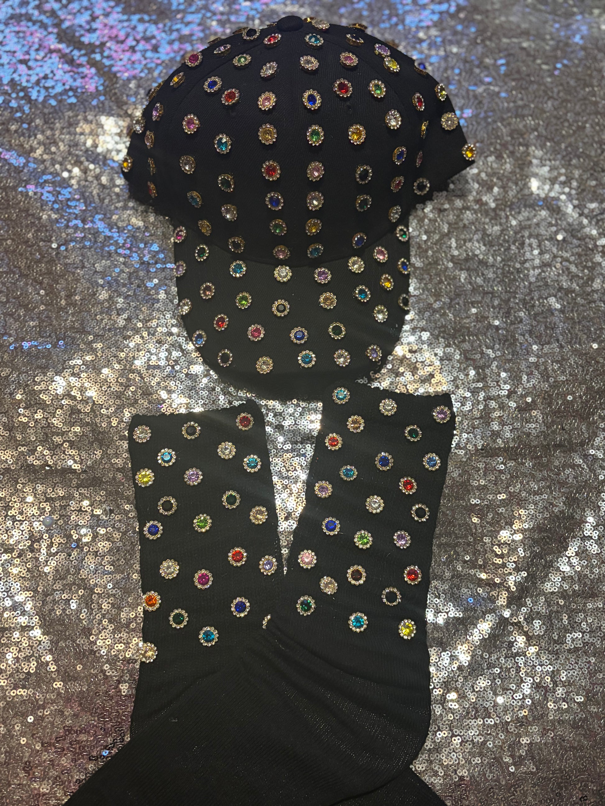 Bold, colorful, and unapologetic β the Midnight Prism Set celebrates individuality with every gem. Jet-black Junk Socks and a matching trucker hat are drenched in rainbow rhinestones, each hand-set to create a multidimensional shimmer that shifts with light. Perfect for those who dare to shine in color, this look is where bold fashion meets radiant energy.